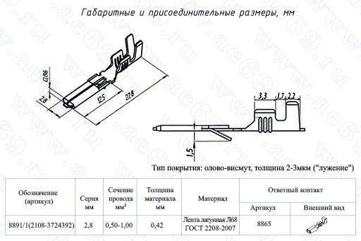 | Покрытие | "олово" 2-3мкм (лужение) |
