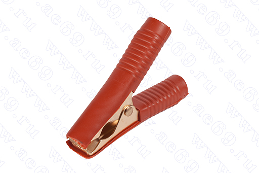 Клемма-зажим "крокодил" L= 89 мм "+" (красный, изолир.полностью, до 90А, омеднённый) представляет собой быстросъёмный контакт самозажимного типа из двух стальных(подвижной и неподвижной), анодированных медью губок, сводящей их пружины и изоляционного чехла из ПВХ красного(+) цвета. Клемма соединяется с проводом при помощи пайки, для фиксации провода по изоляции есть зажимные лепестки. Номинальное напряжение до 48V, ток до 90А. Температура эксплуатации от -25 гр.С до +60 гр.С. Возможные варианты применения - в качестве универсального быстросъёмного контакта с цветовой индикацией полярности при подключении.