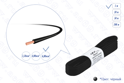 Провод автомобильный ПВАМ 6,00 мм кв.( 5 метров, чёрный)