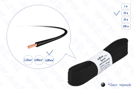 Провод автомобильный ПВАМ 6,00 мм кв.( 10 метров, чёрный)