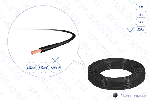 Провод автомобильный ПВАМ 6,00 мм кв.(бухта 100м, чёрный)